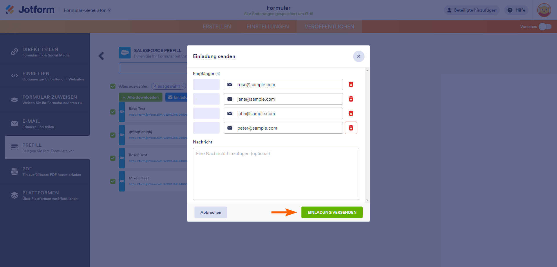 - Gehen Sie im Formular-Generator oben auf Veröffentlichen.