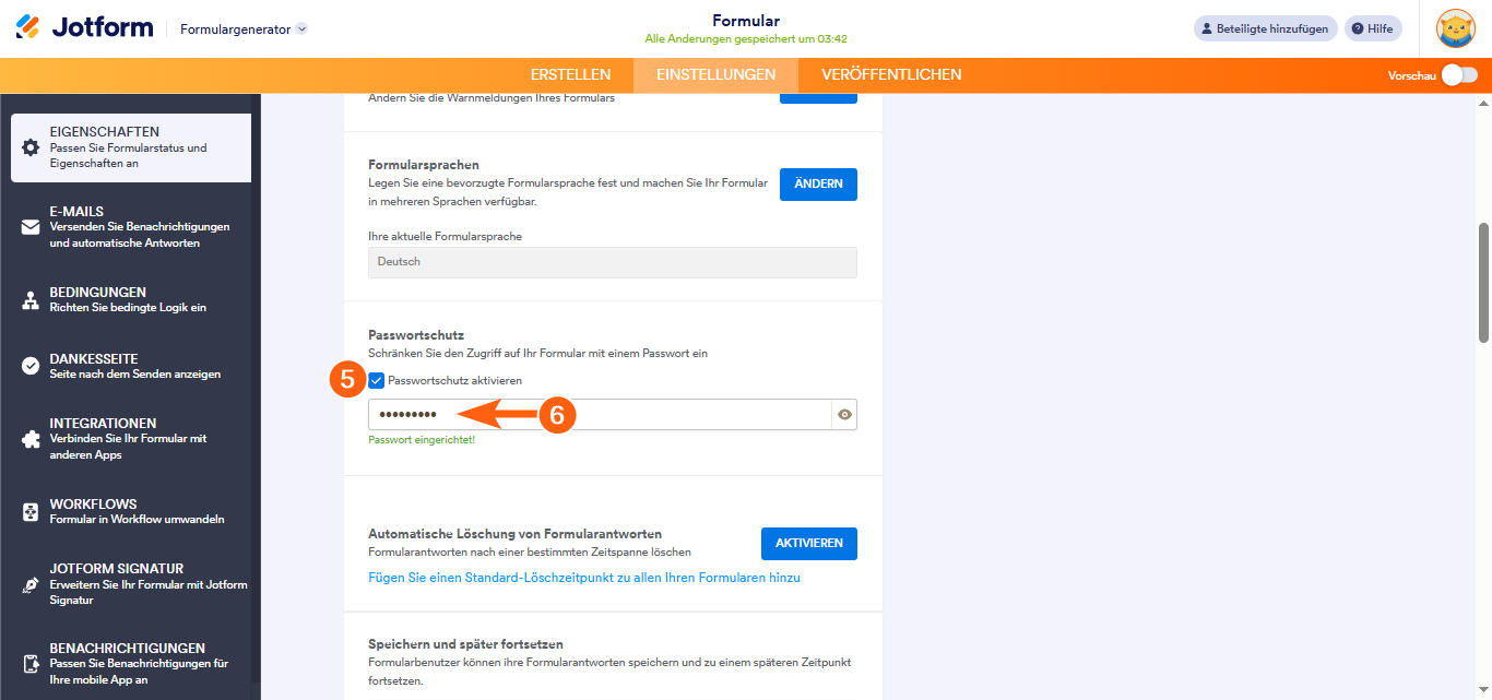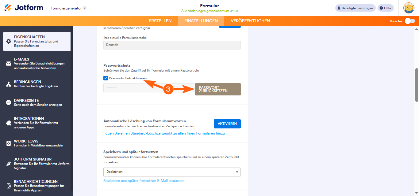 Sie können den Passwortschutz Ihres Formulars jederzeit ändern oder entfernen. So geht’s: