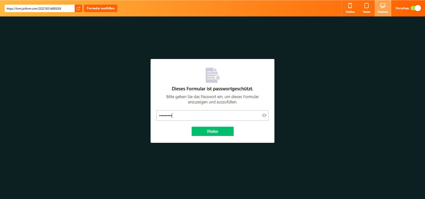 Das war’s! Sie haben Ihrem Formular erfolgreich ein Passwort hinzugefügt, sodass nur Personen mit dem Code darauf zugreifen können. Jeder, der das Formular öffnen möchte, muss nun das Passwort eingeben, bevor er es anzeigen oder absenden kann.
