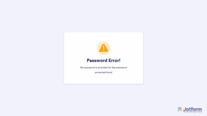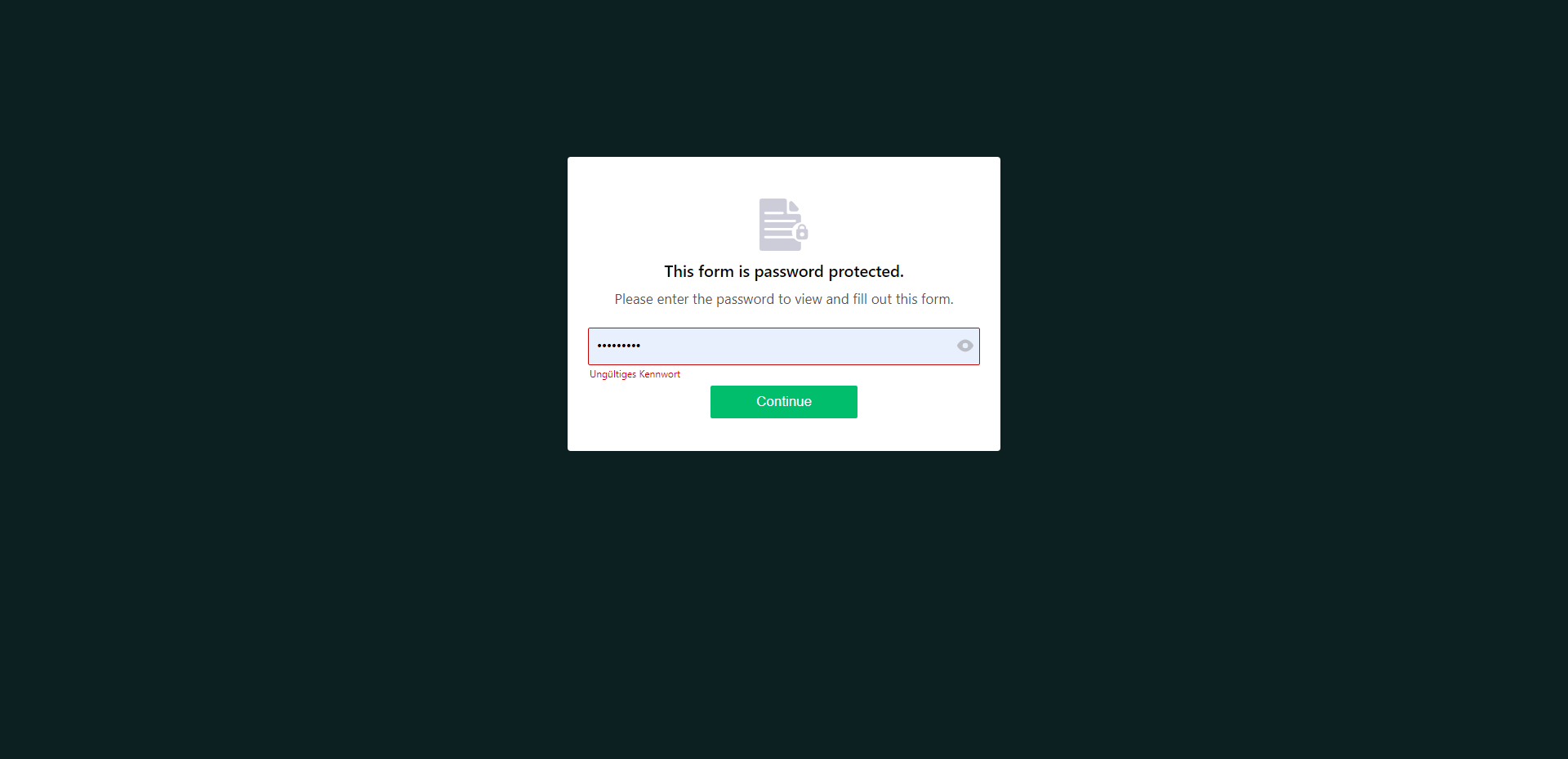 Wenn jemand das Formular ausfüllt und ein Passwort festgelegt ist, wird beim Absenden eine Fehlermeldung angezeigt, die besagt, dass für das passwortgeschützte Formular kein Passwort angegeben wurde.