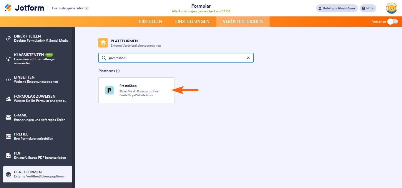 Wenn Sie eine PrestaShop-Website haben und Ihr Formular in eine Seite einbetten möchten, folgen Sie den unten stehenden Schritten.