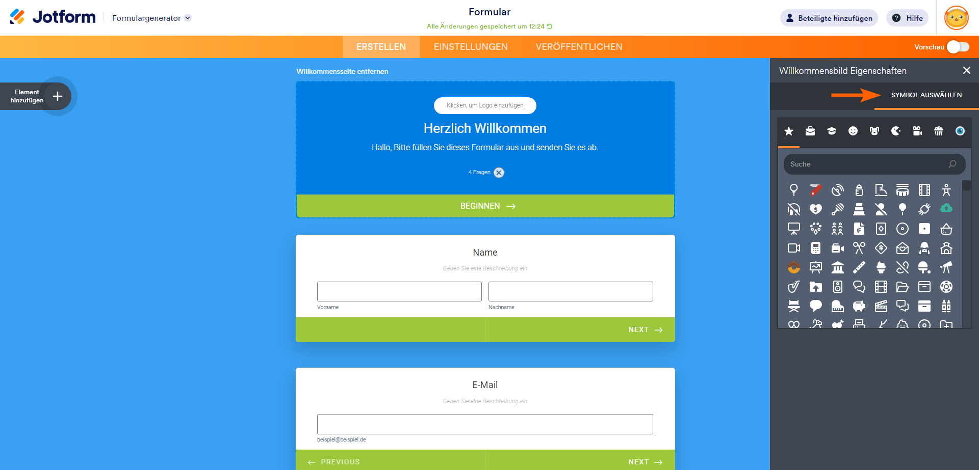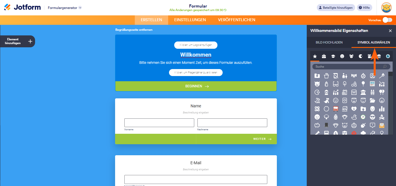 Sie können auch auf den Tab Symbol auswählen wechseln und ein Symbol als Logo auswählen.