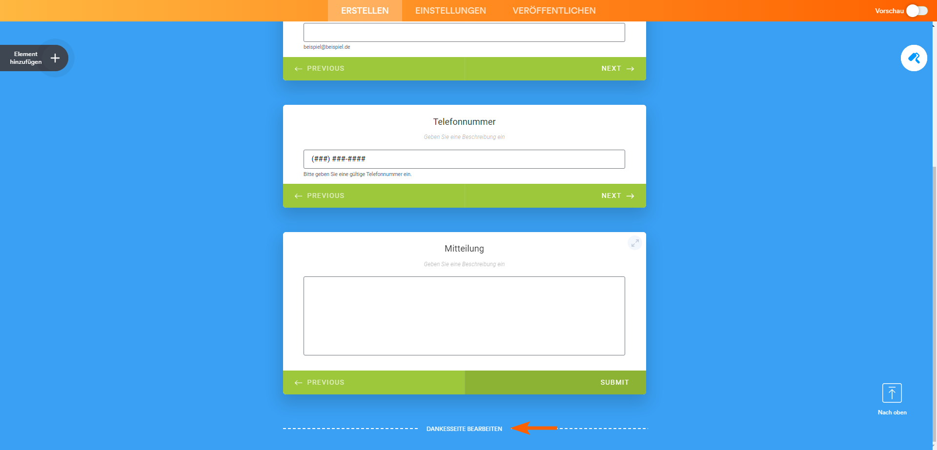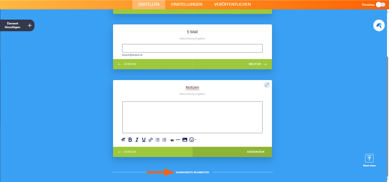 Für die Dankesseite wählen Sie unten Dankesseite bearbiten aus.
