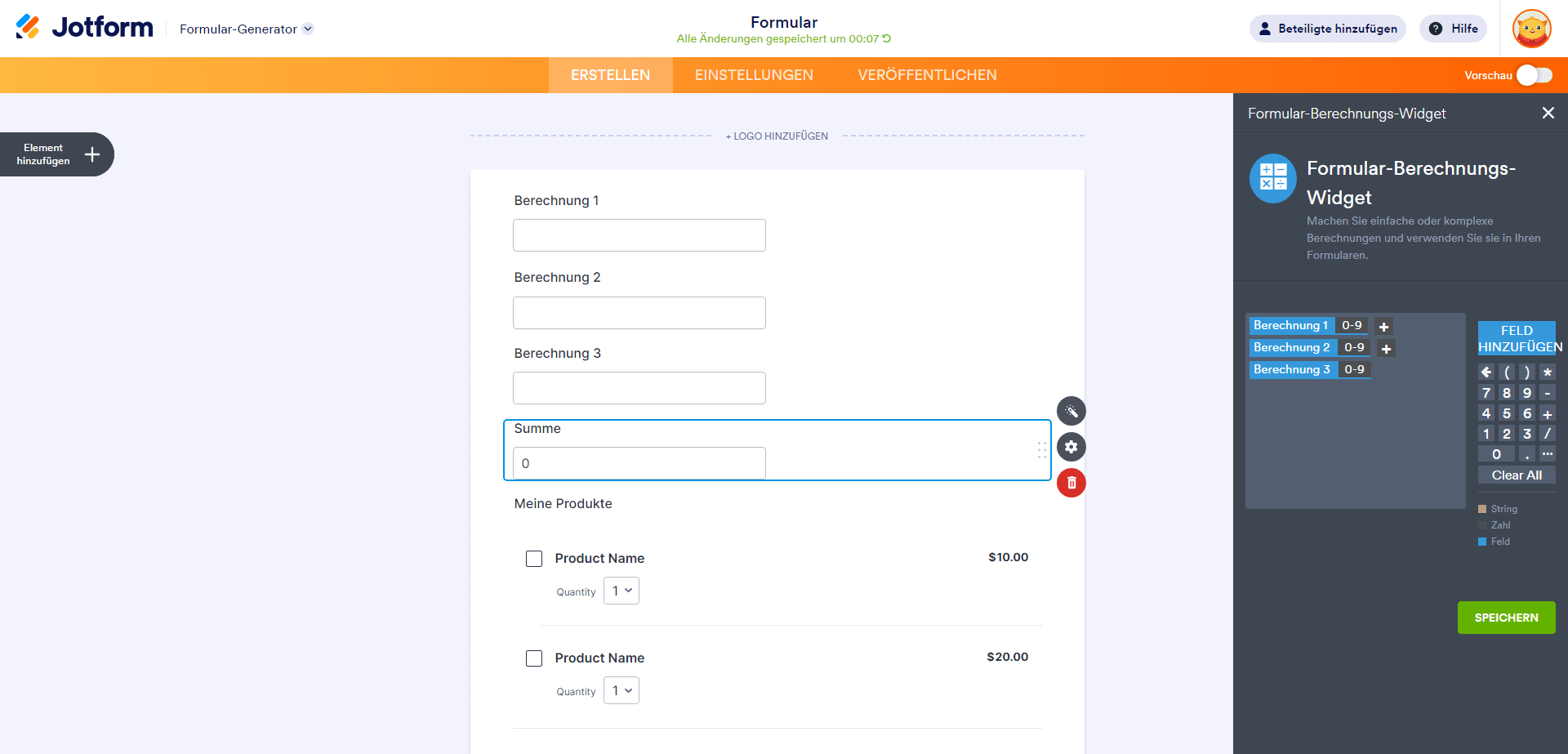 Formular-Berechnungs-Widget einrichten