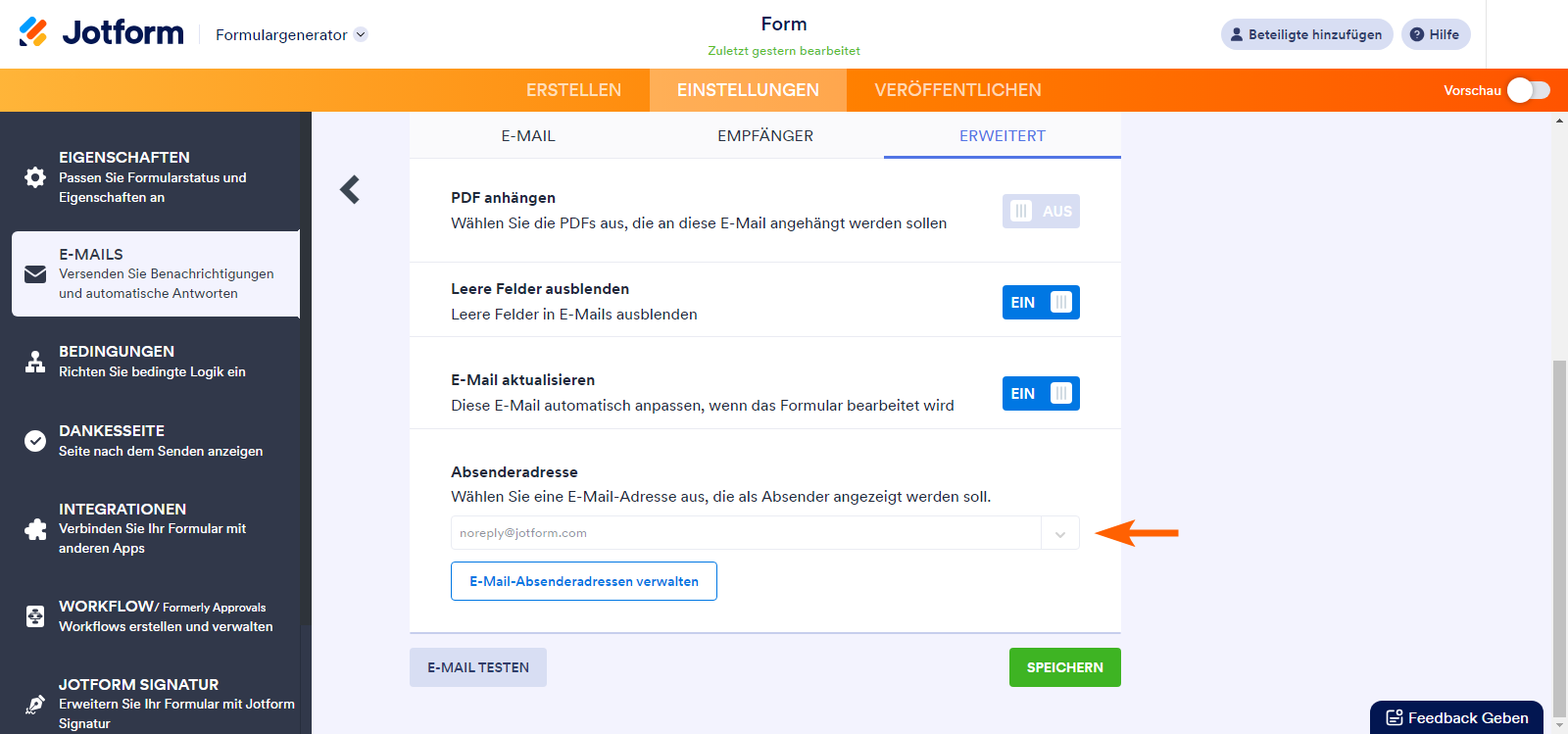 Zeige “noreply”-E-Mail in den Absender-E-Mail-Optionen