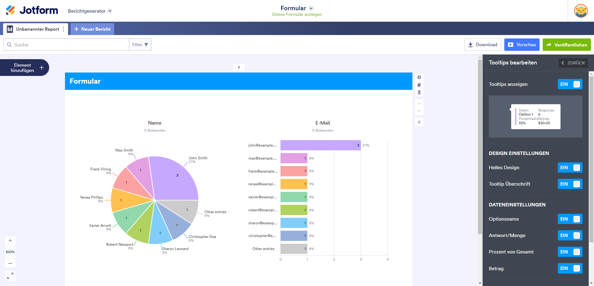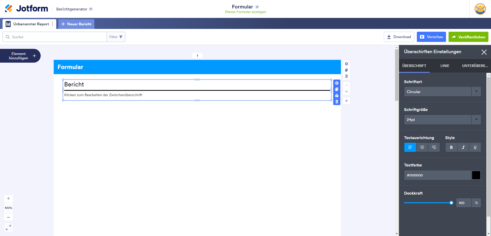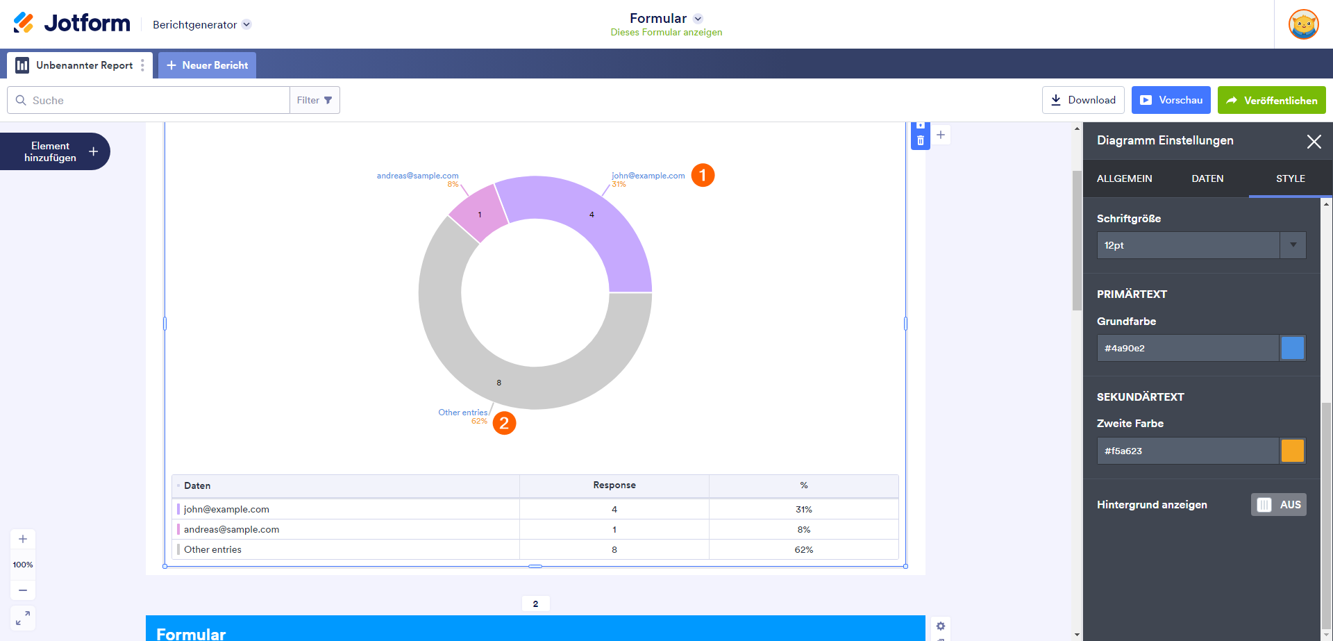 So fügen Sie das Jotform Branding in Ihren Bericht ein