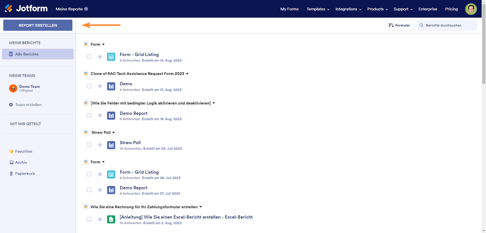 Mit dem Formular Generator können Sie visuelle Berichte direkt aus Ihren Formulareinreichungen erstellen und so die Datenpräsentation nahtlos und effizient gestalten. So geht’s: