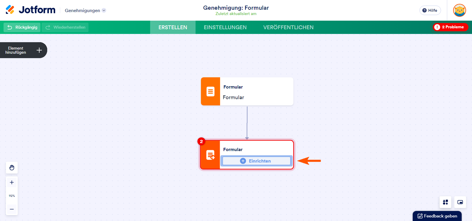 - Fügen Sie im Workflow-Builder ein Formular-Element zu Ihrem Ablauf hinzu.