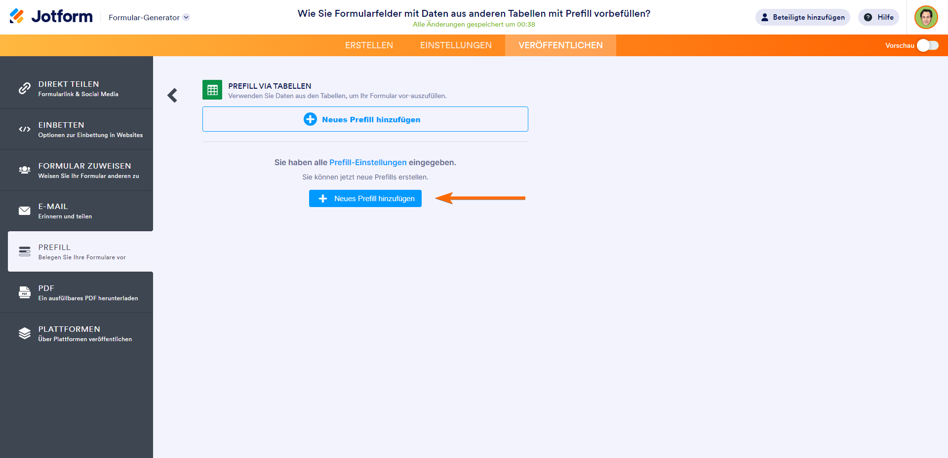 - Gehen Sie im Formular Generator oben auf Veröffentlichen.