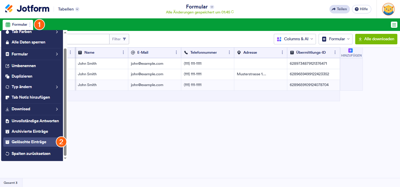 Wenn Sie mehrere Einträge aus Ihrer Einreichungstabelle entfernen möchten, können Sie sie alle auf einmal löschen. So geht’s: Vorgehensweise: