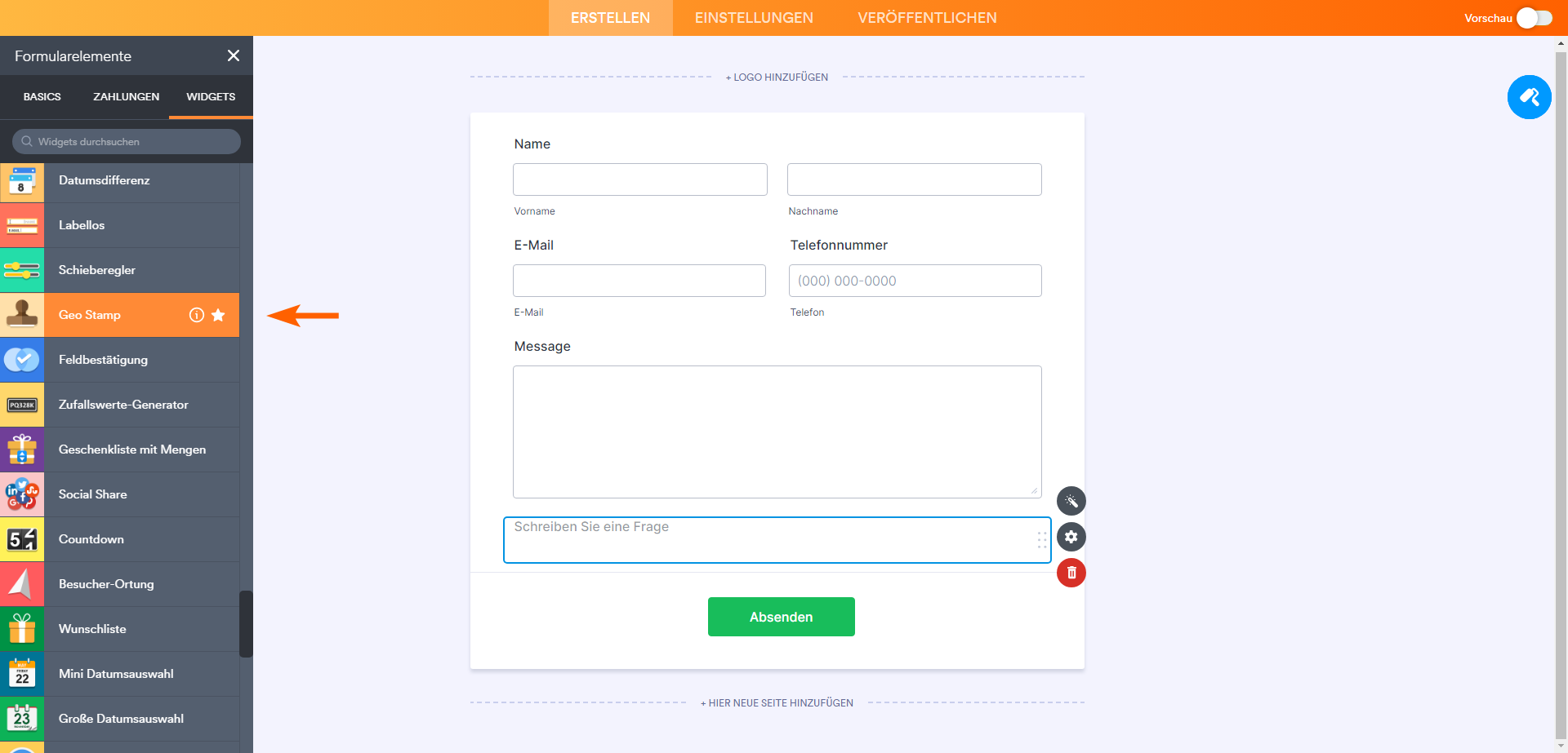 - Suchen Sie nach Geo Stamp und fügen Sie es zu Ihrem Formular hinzu.