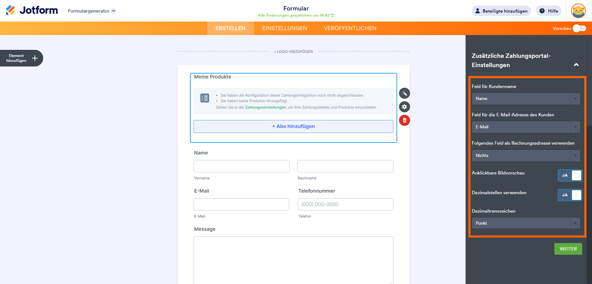 - Klicken Sie auf den Weiter Button unten, um Ihre Abonnementartikel einzurichten.