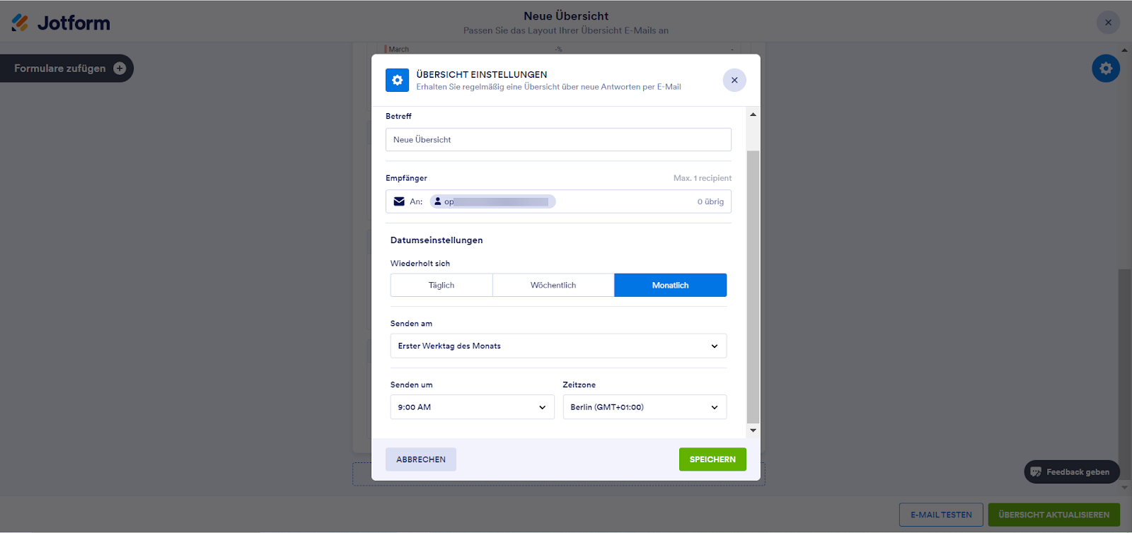 Einstellungen für jede Formularantwort Zusammenfassung