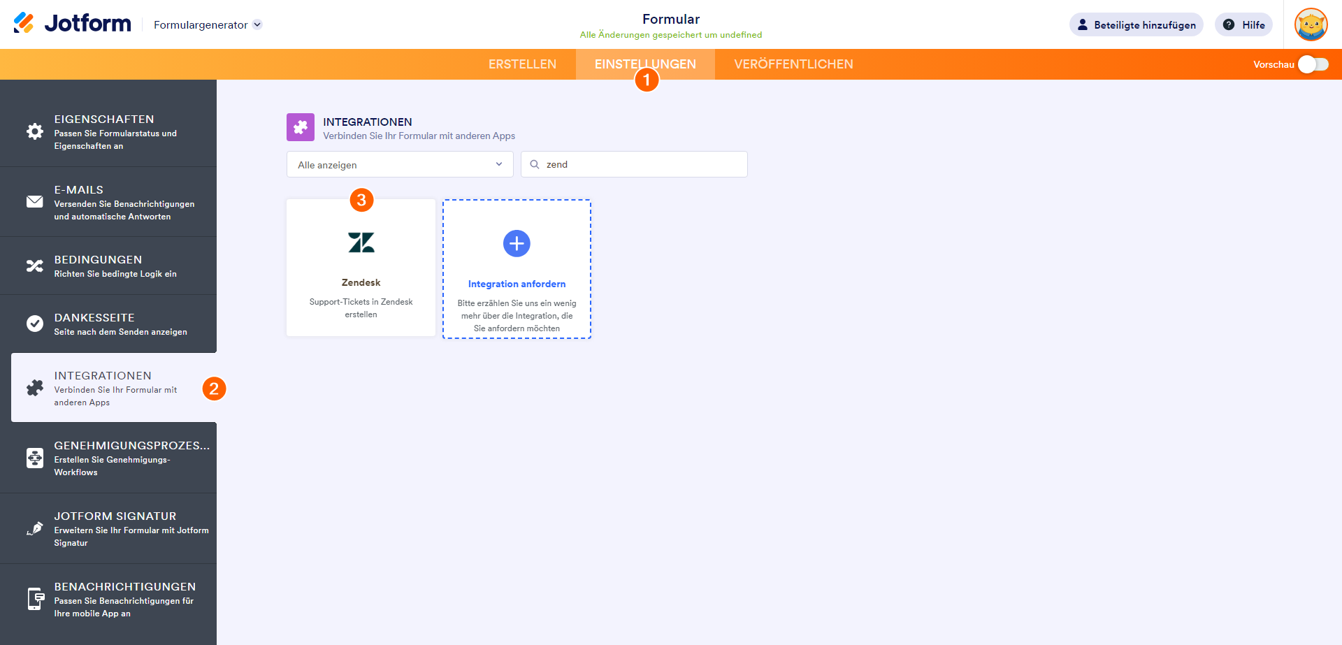 - Gehen Sie im Formular-Generator zum Reiter Einstellungen.