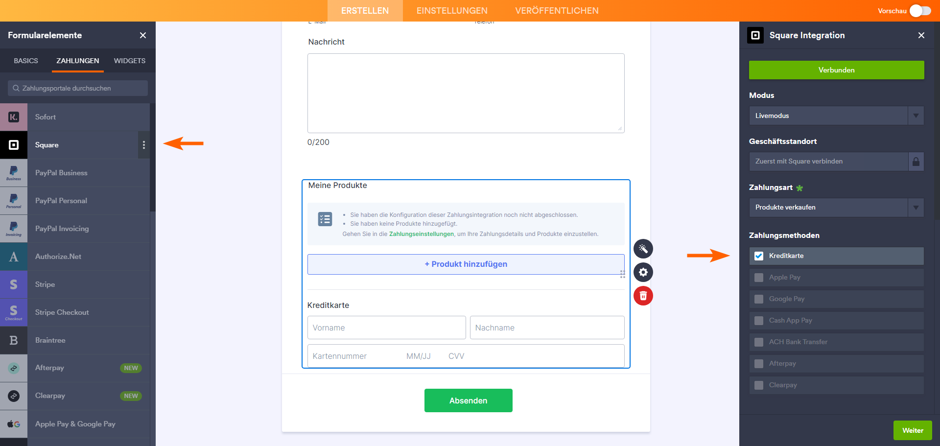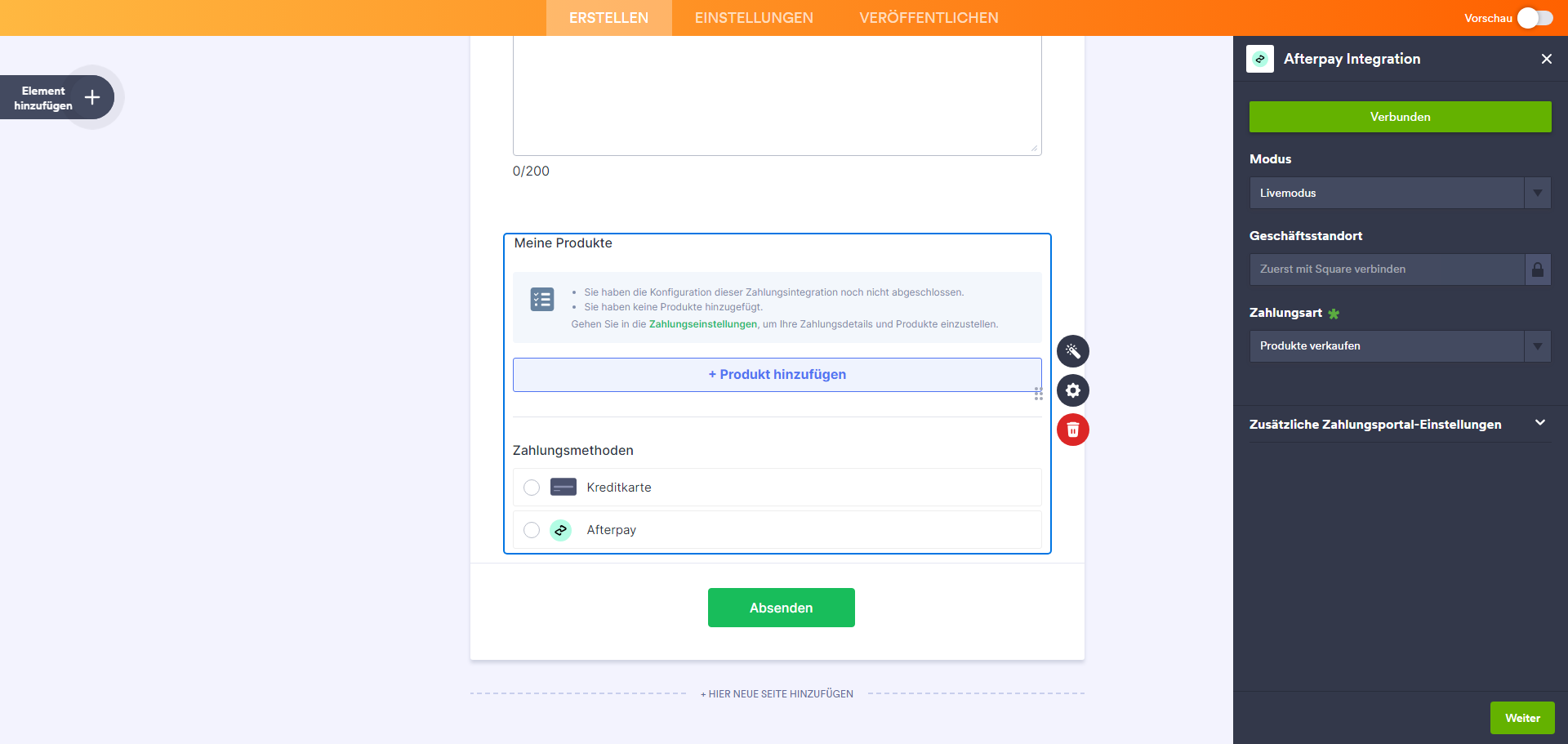 Um Afterpay in Ihrem Formular zu nutzen, verbinden Sie es einfach über das Square Payment Gateway.