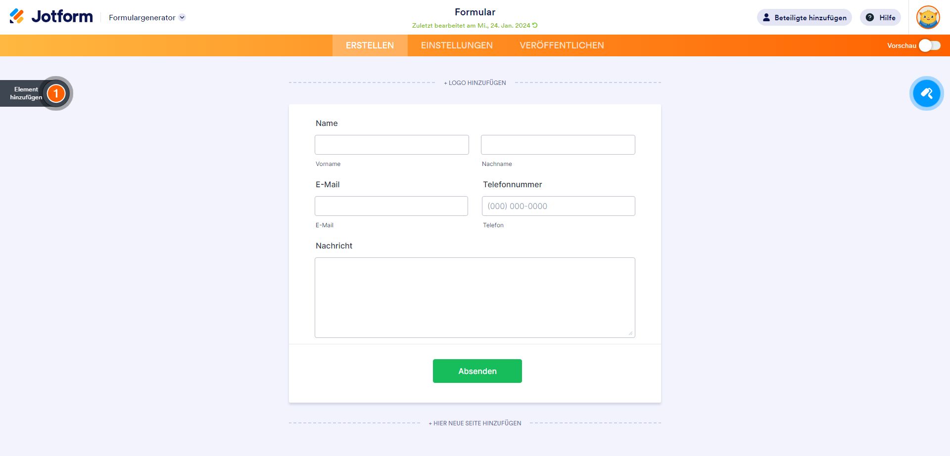 - Klicken Sie auf den Add Form Element Button im Formular-Generator.