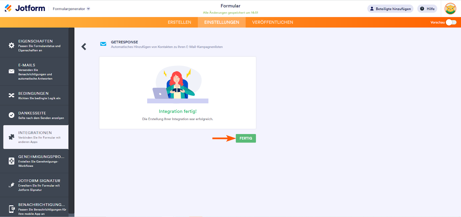Jotform lässt sich mit GetResponse integrieren. Wenn Sie Ihre Formularkontakte an Ihre GetResponse-Liste senden möchten, folgen Sie den einfachen Schritten unten.