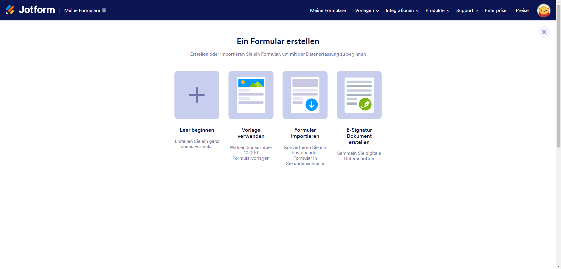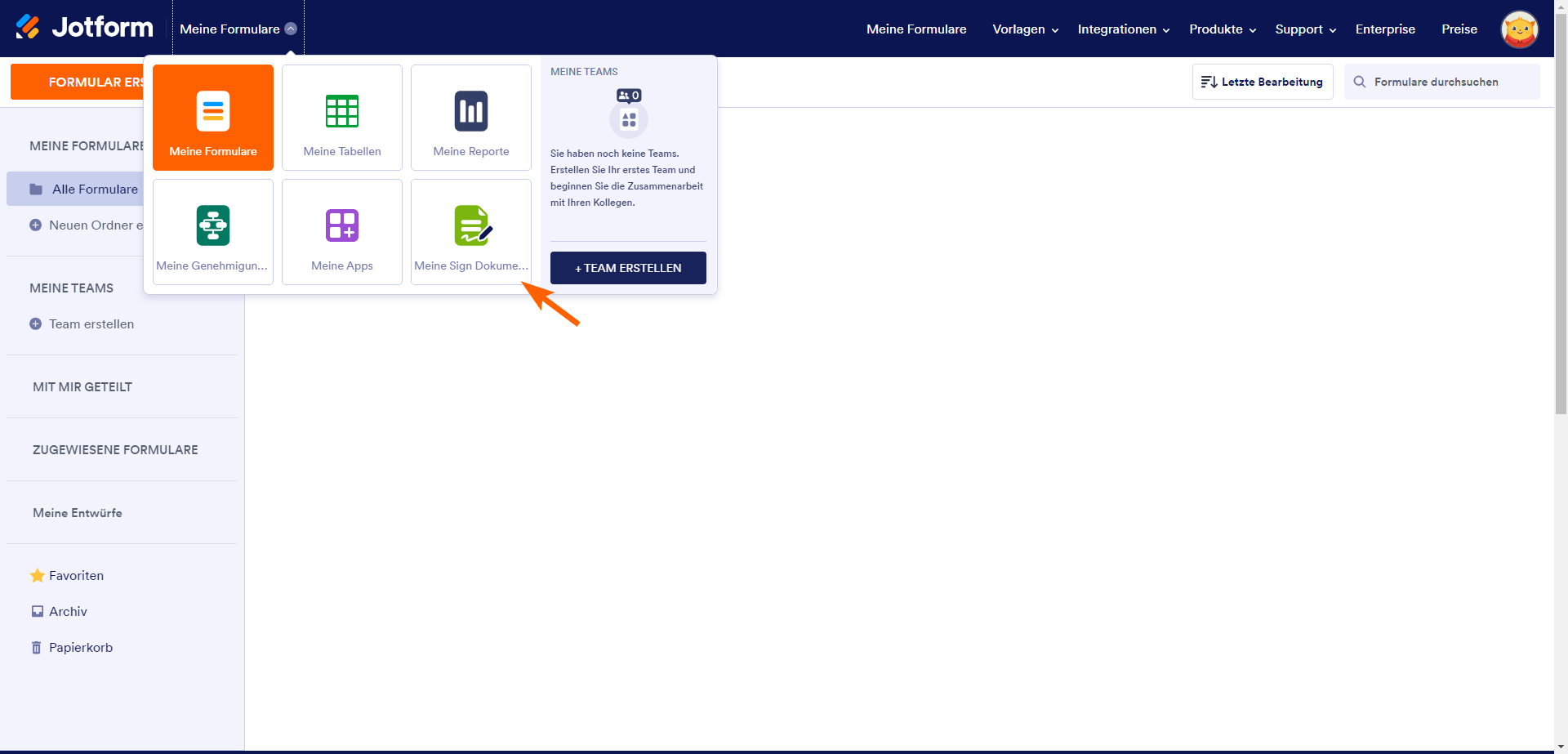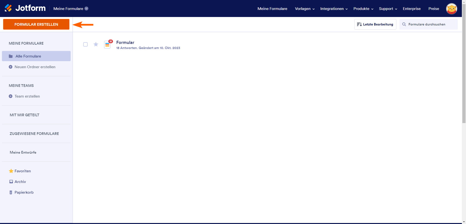 - Klicken Sie auf den orangefarbenen Button Formular erstellen auf der linken Seite des Formular-Generators.
