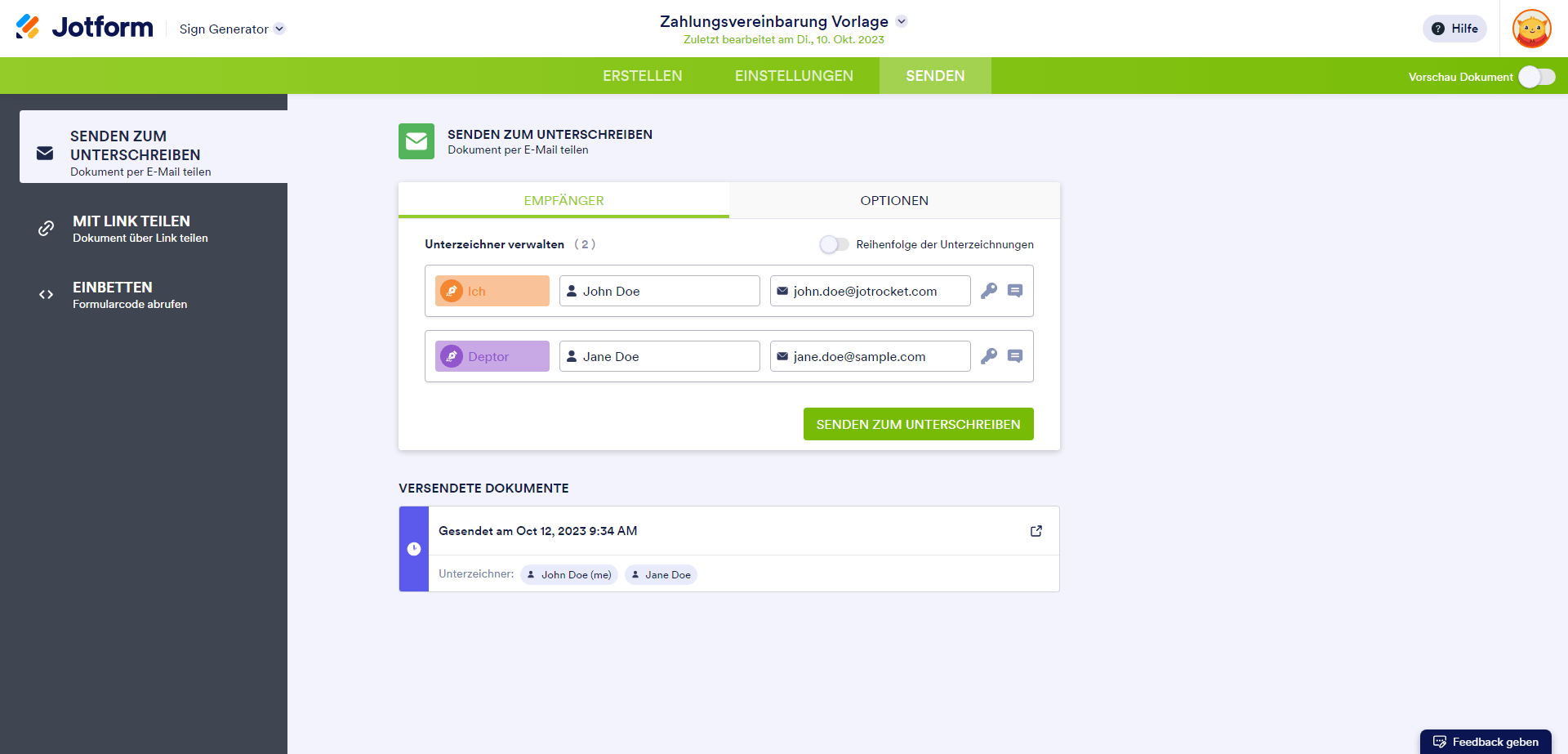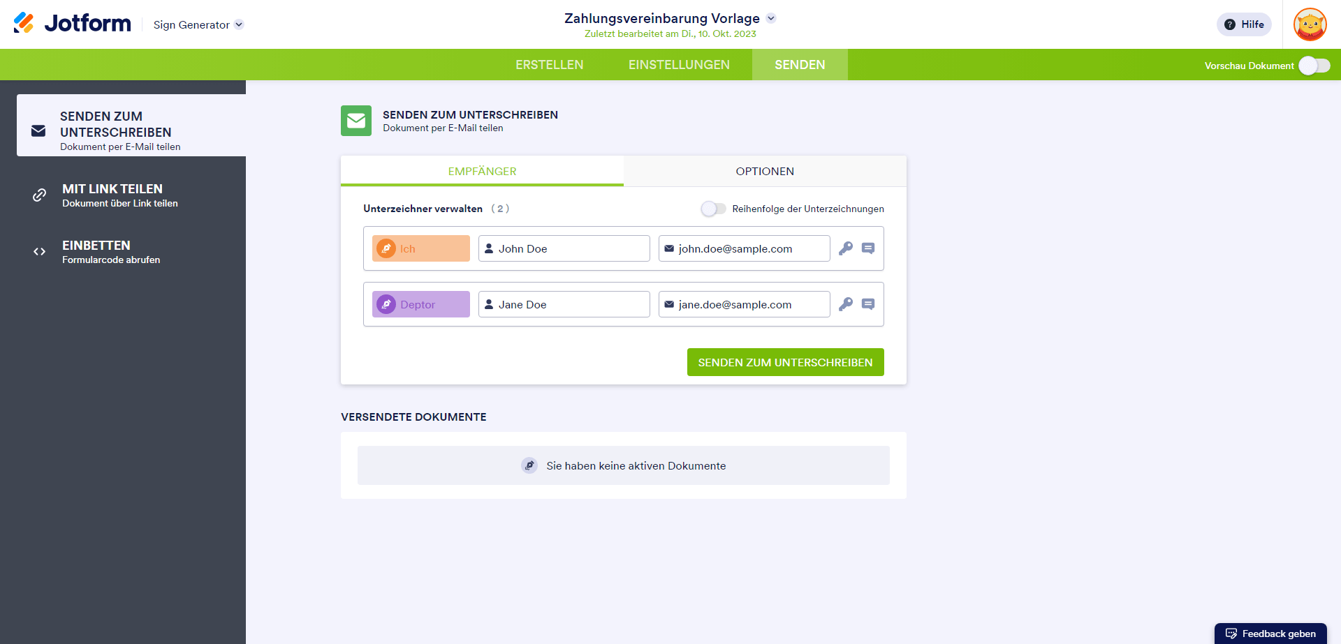 Erstellen Sie ein signierbares Dokument mit dem Formular-Generator
