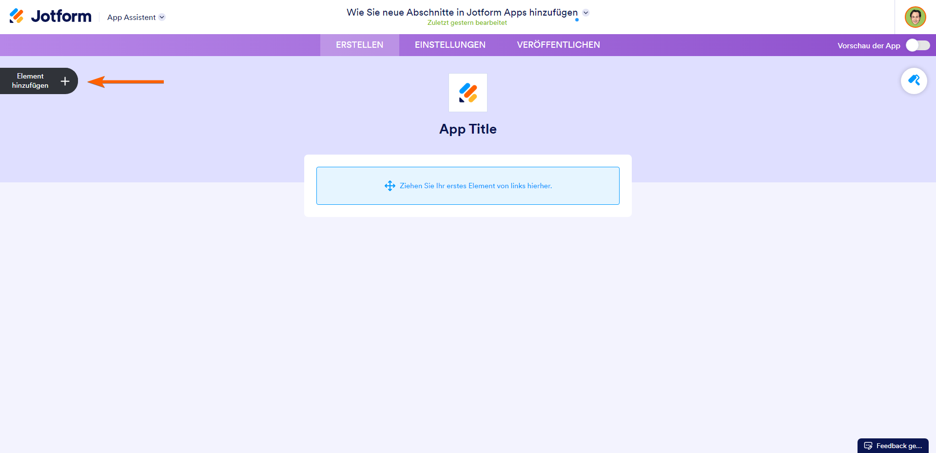 Elemente zu Ihrer App hinzufügen