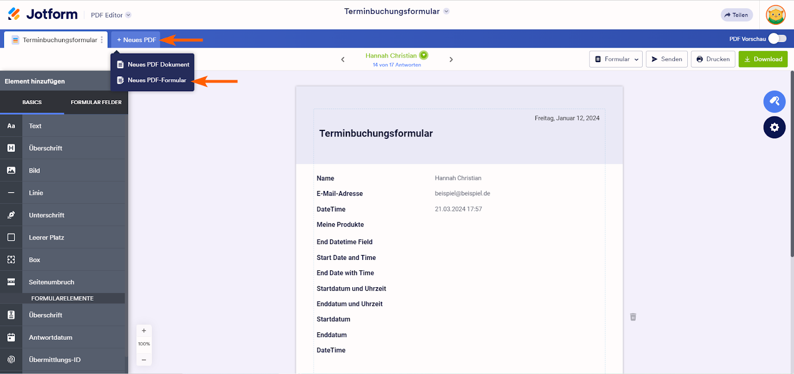 - Klicken Sie auf Neues PDF-Formular.