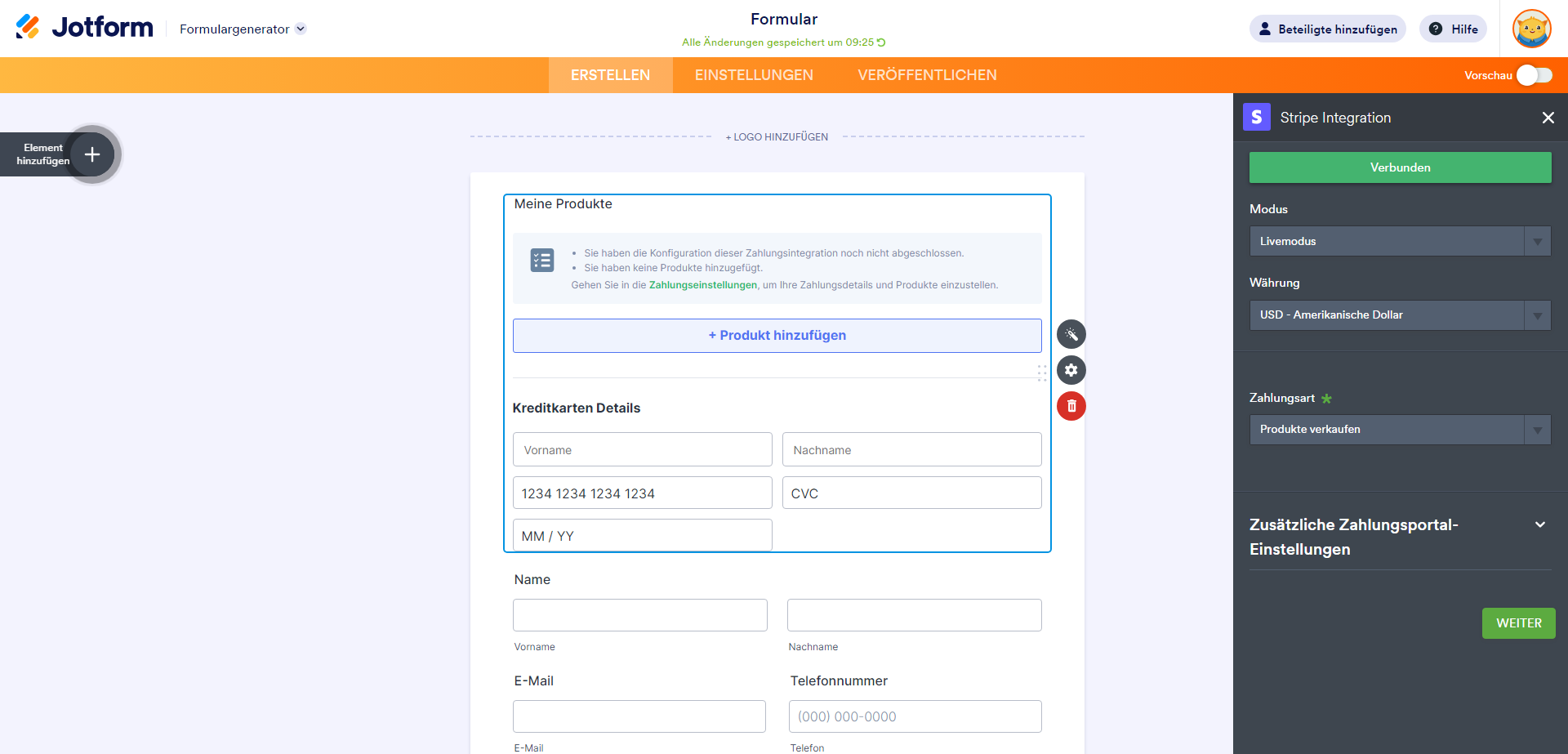 Erstellen Sie ein neues oder bearbeiten Sie ein bestehendes Formular und folgen Sie den nachstehenden Schritten, um Stripe in Ihr Formular zu integrieren.