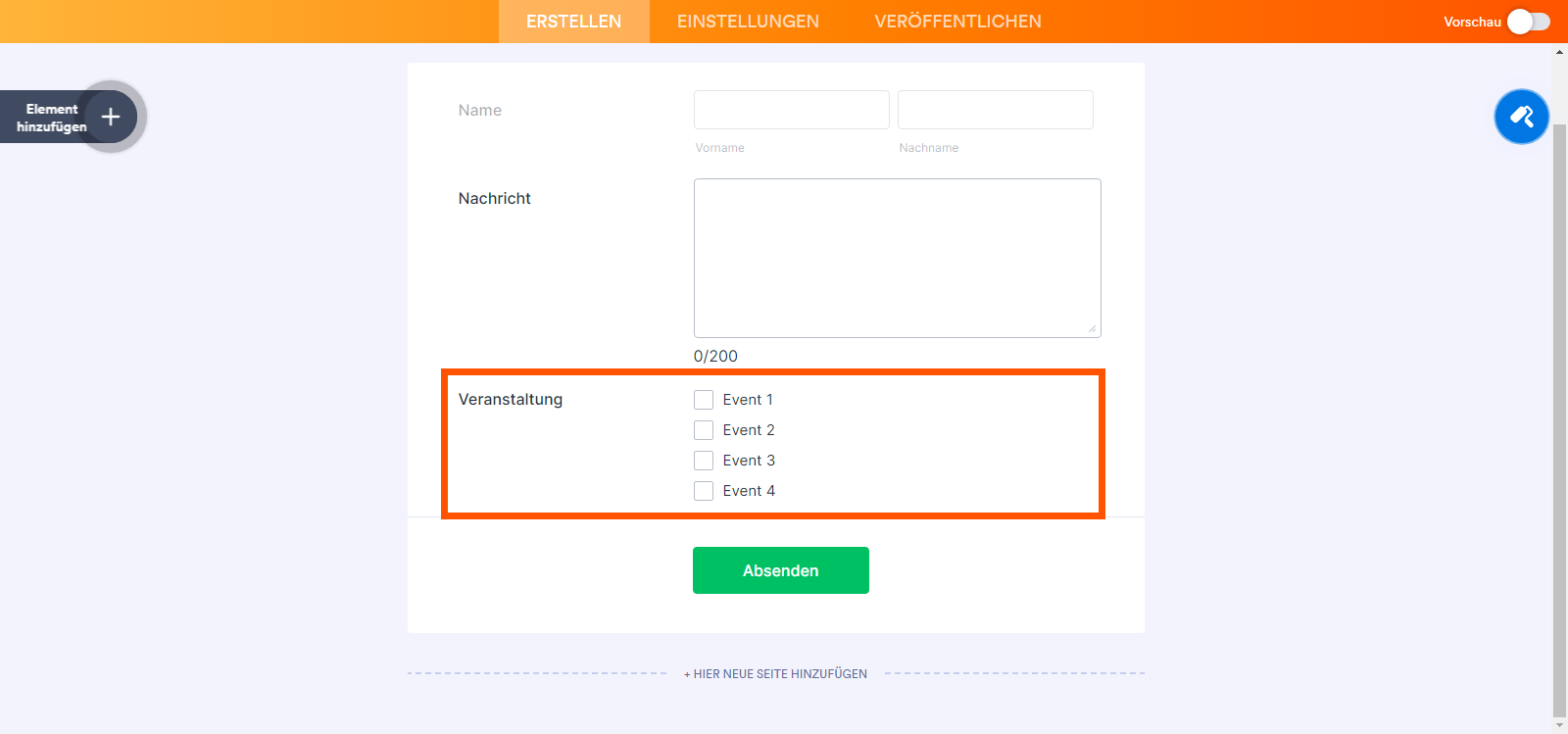 Um dies zu verdeutlichen, werden wir ein Formular mit der Auswahl der Veranstaltung verwenden. Wir nutzen diese Frage, um eine E-Mail mit unterschiedlichen PDF Anhängen zu senden.