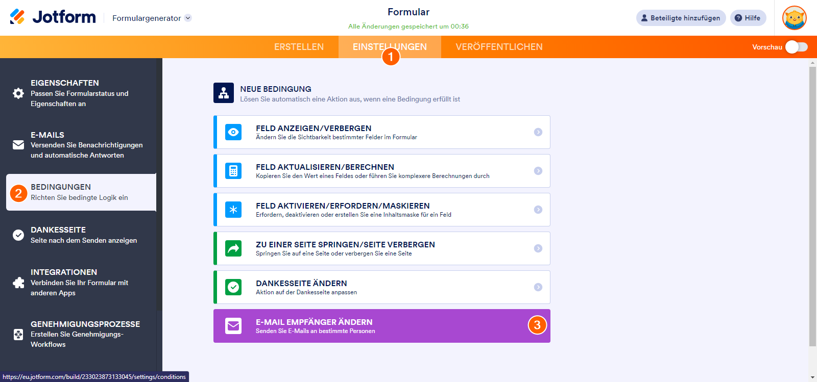 - Immer noch im Formular Generator klicken Sie auf den Reiter Einstellungen.