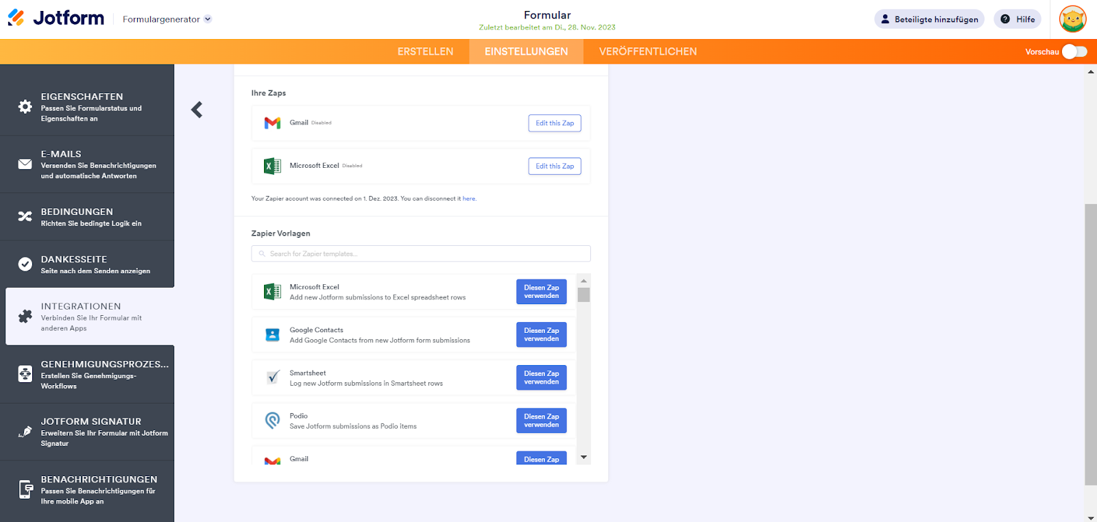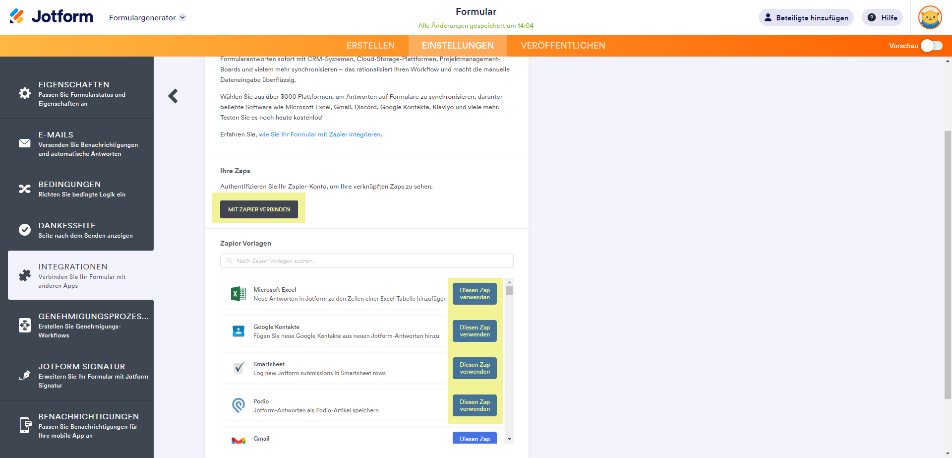 Einrichten von Zaps im Formular-Generator mit Zapier Integration