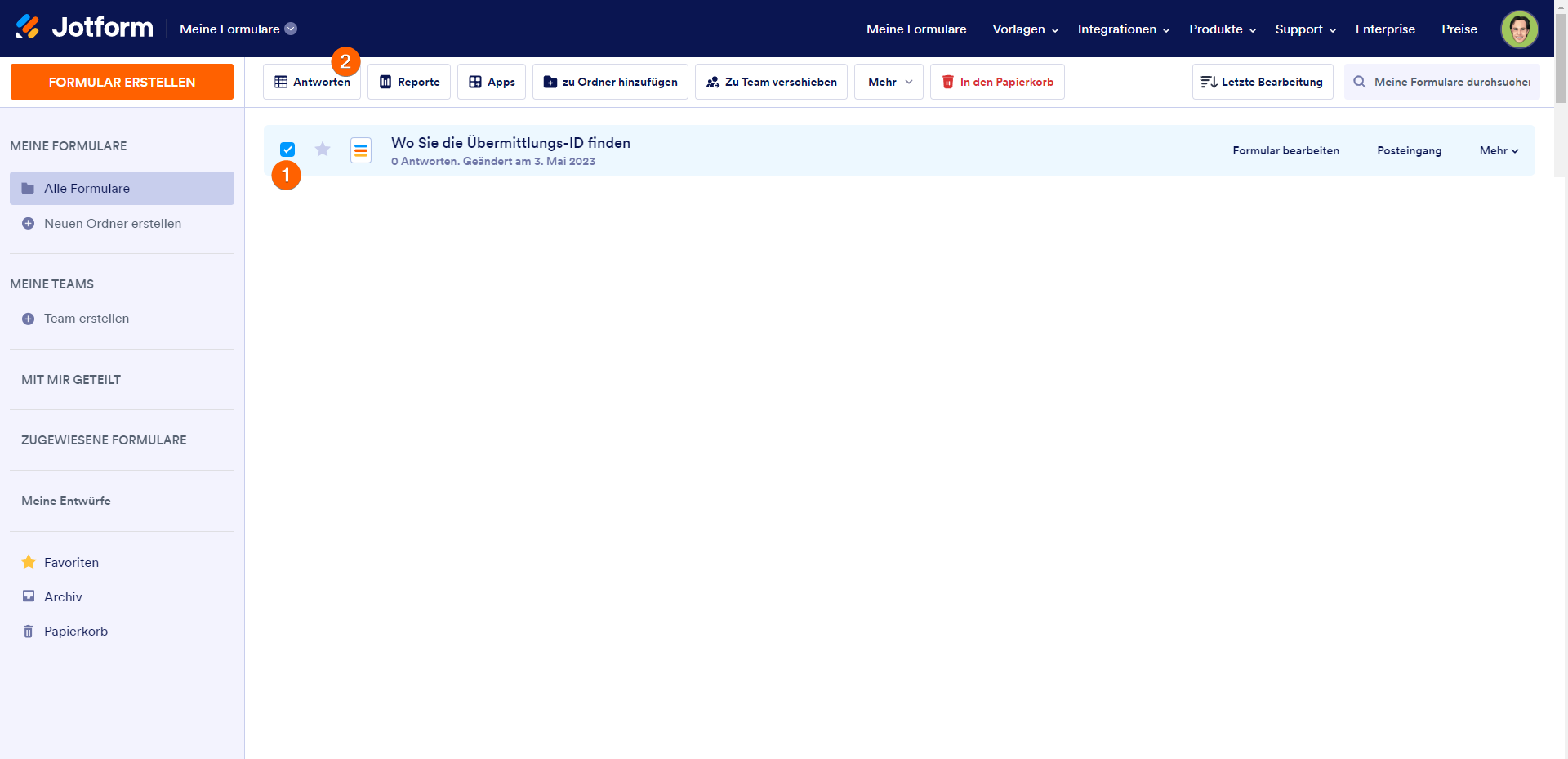 Wenn ein Formular ausfüllt, wird seinem Eintrag eine eindeutige Nummer, die sogenannte Übermittlungs-ID, zugewiesen. Die Kenntnis der Submission-ID kann hilfreich sein, um Fehler zu beheben, Einträge zu verfolgen, Drittanbieter-Apps zu konfigurieren oder die Jotform API zu verwenden.