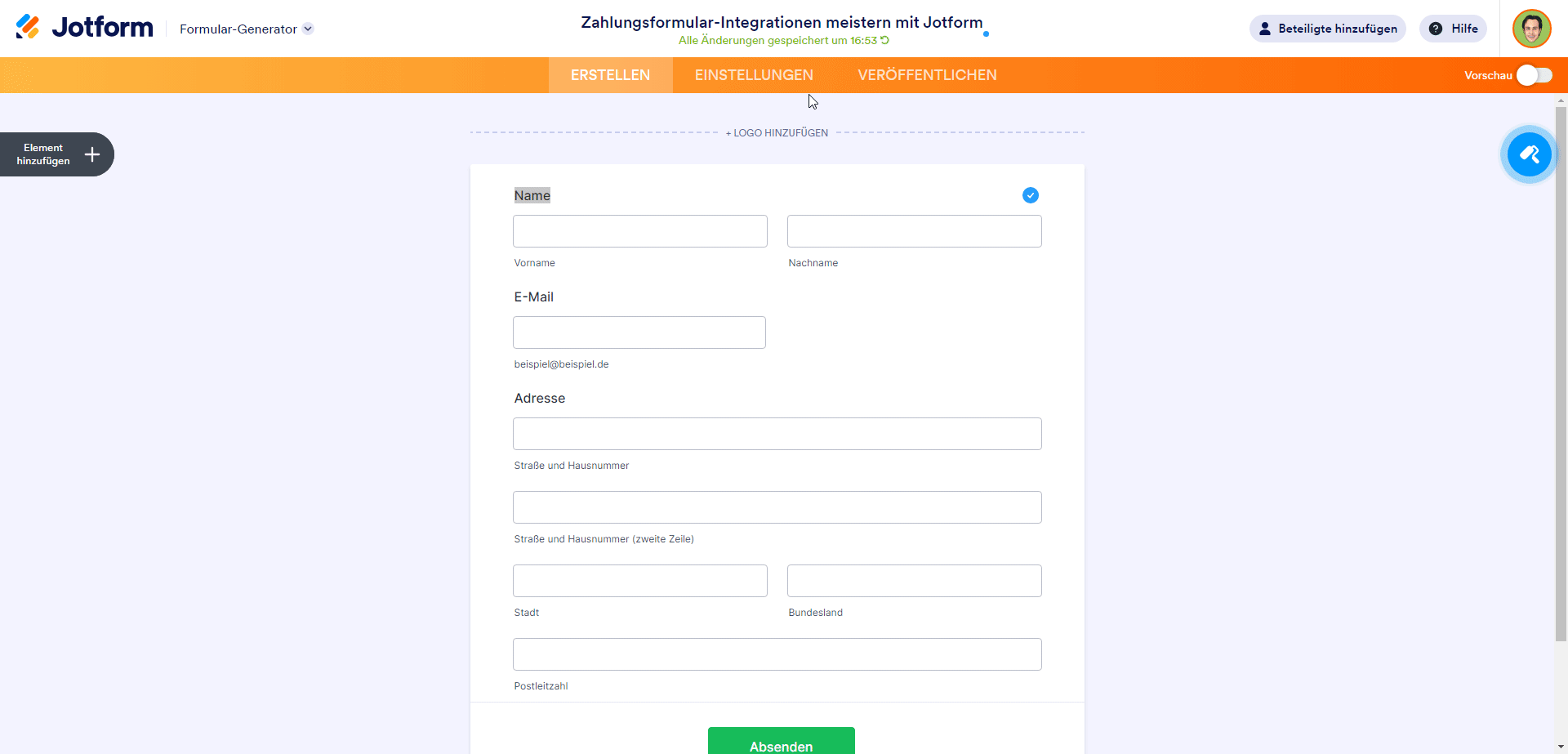 Das Einziehen von Online-Zahlungen ist eine der stärksten Dienstleistungen von Jotform. Zahlungsformulare ermöglichen die schnelle und einfache Erfassung von Online-Zahlungen, ohne dass Sie eine einzige Zeile Code schreiben müssen.