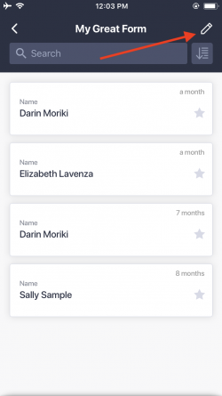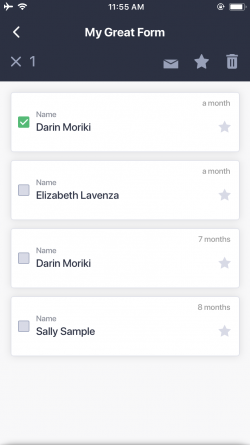 - Android- und iOS-Benutzer können durch langes Drücken (Berühren und Halten) im Menü für die Formularübermittlung mehrere Einsendungen löschen und sie als gelesen oder wichtig markieren. Eine Aktion mit langem Drücken findet statt, wenn jemand auf ein Symbol drückt und es längere Zeit gedrückt hält. iOS-Benutzer können auch ein Stiftsymbol oben rechts im Menü der Eingabeliste verwenden, um mehrere Einträge auszuwählen – diese Option ist jedoch für Android-Benutzer nicht verfügbar.
