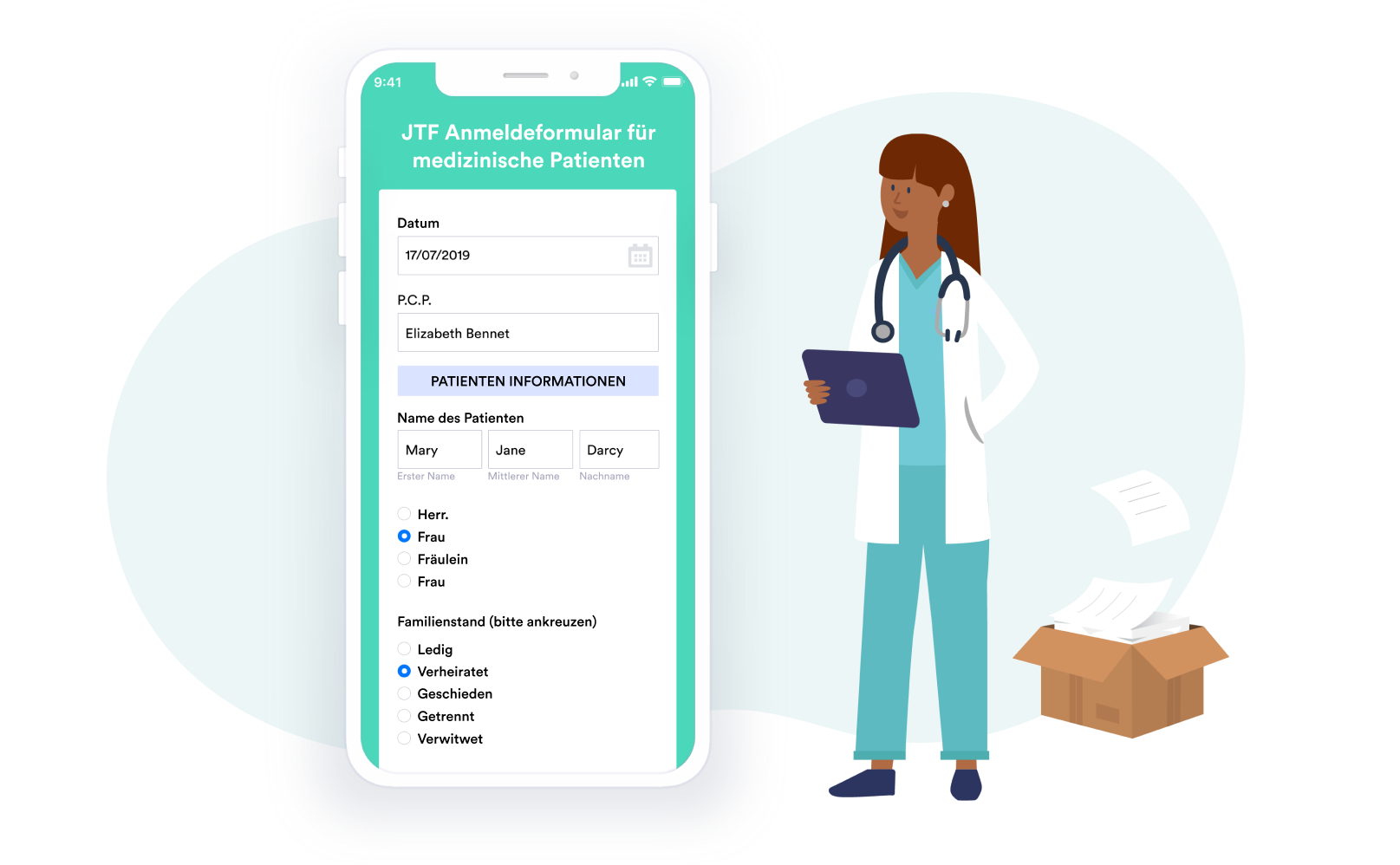 - Gesundheitswesen (Patientenaufnahme, Anamneseformulare)