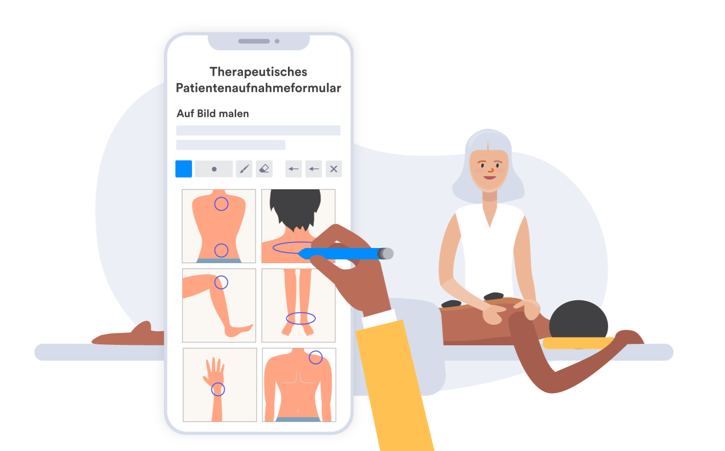 - Ein Massagetherapeut übermittelt Fotos und sammelt Unterschriften von Patienten mit mobilen Formularen. Die Fotos helfen ihm, die Veränderungen der Körperhaltung seiner Patienten im Laufe der Zeit zu bewerten.