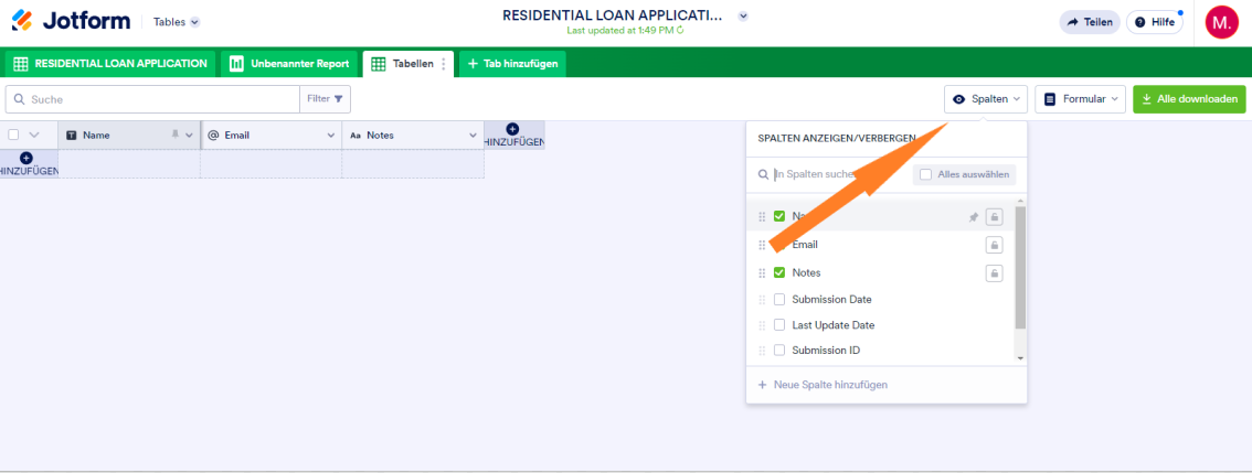 - Wie man Spalten in Jotform Tabellen fixiert und wieder loslöst