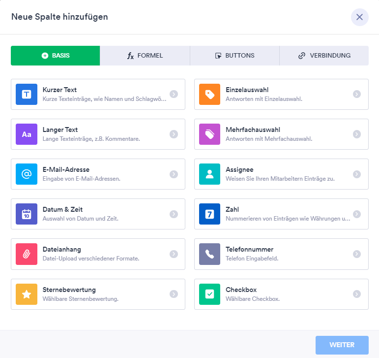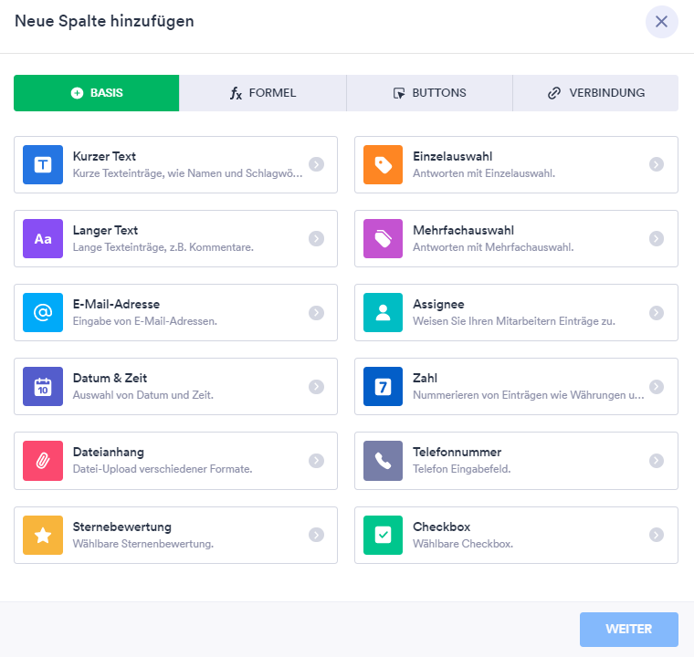 1. Erfassung und Organisation jeder Art von Daten mit gebrauchsfertigen Spaltenarten