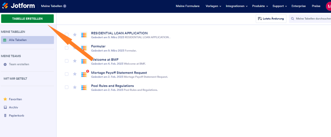 Es gibt mehrere Möglichkeiten, ein Formular zu erstellen, und dasselbe gilt für den Zugriff auf Jotform Tabellen.