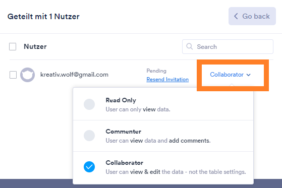 Obwohl ein Arbeitsbereich über eine individualisierbare Einladung per E-Mail oder einen zugehörigen Link für jedermann freigegeben werden kann, verfügt Jotform Tabellen über Sicherheitsvorkehrungen. So können Sie überwachen, wer Zugriff auf Ihre Daten hat und festlegen, was diese Personen damit tun können und wie lange sie darauf zugreifen dürfen.