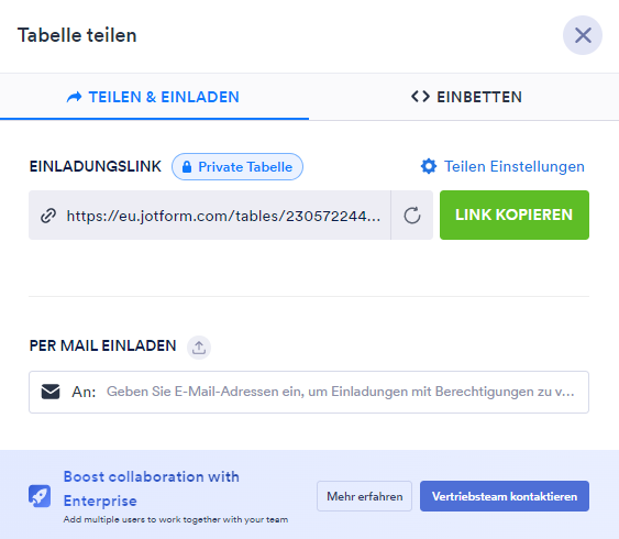 - Wie man Jotform Tabels freigibt und mit anderen Personen zusammenarbeitet