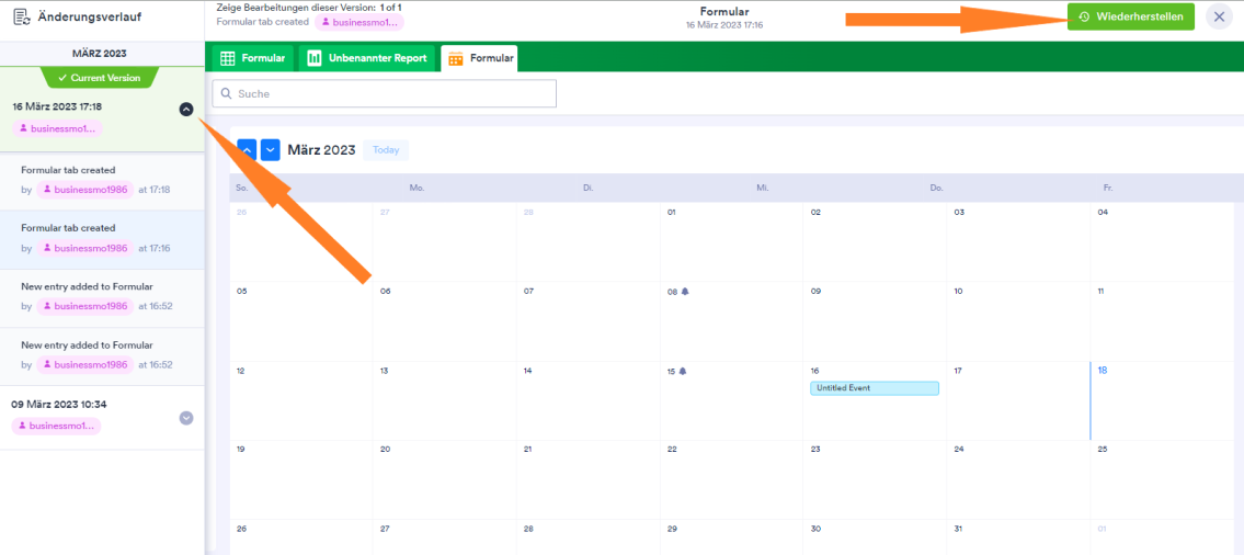 - Wie man die Änderungen in Ihren Jotform Tabellen sehen kann (“Änderungsverlauf”)