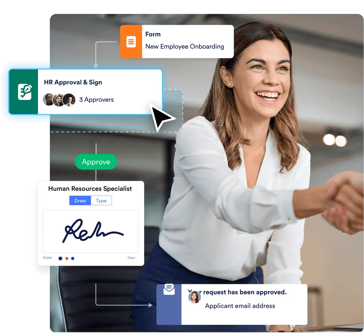 Simplify hiring without technical help. Create custom application forms, build approval flows for hiring decisions, collect e-signatures with Jotform Sign, and send automatic updates to applicants, all with an intuitive drag-and-drop interface.