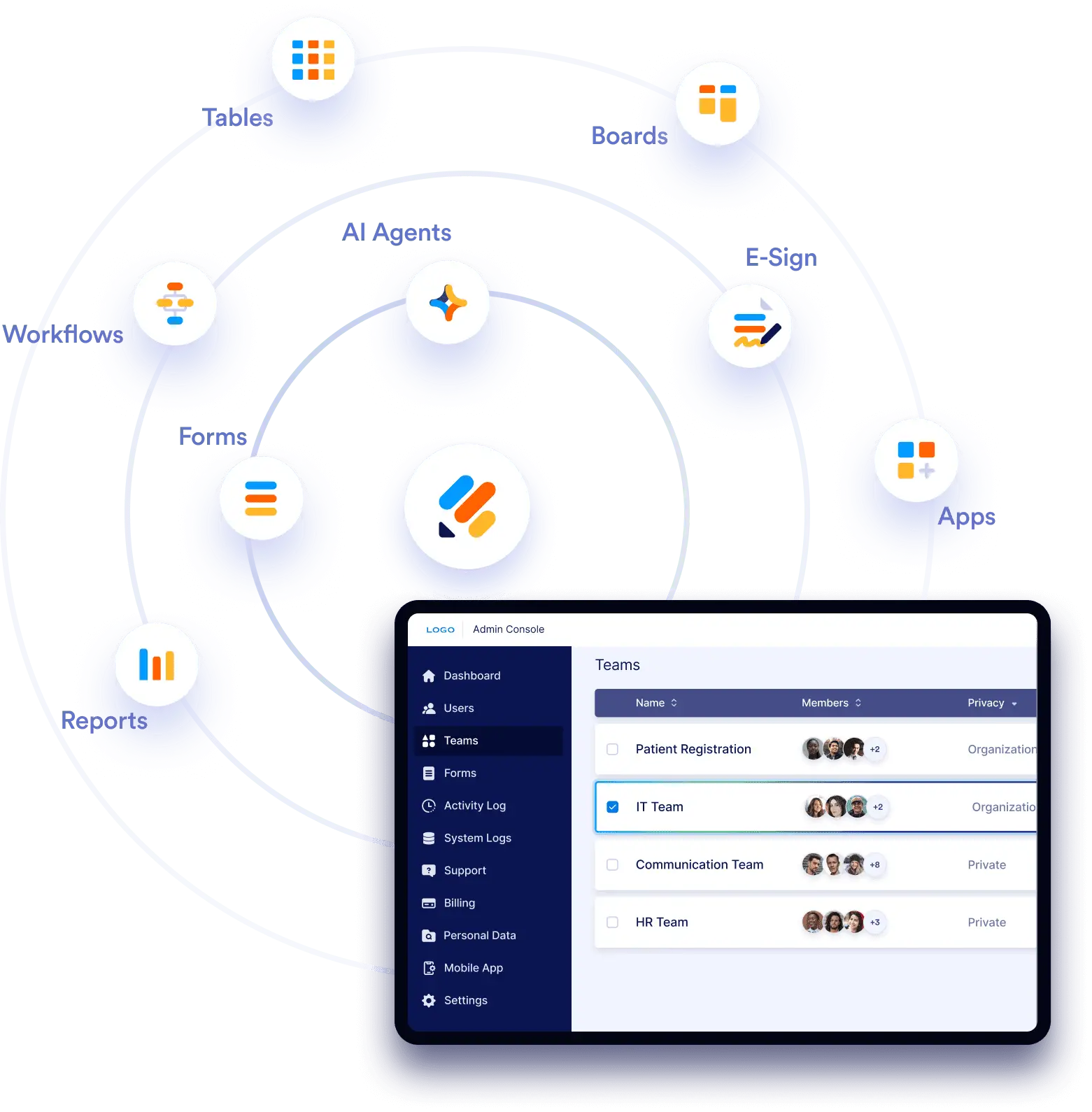 Empower your team to build custom forms, automate workflows, secure e-signatures, and create real-time reports with their own role-based access. The security you need and the autonomy teams want on the no-code platform everyone loves.