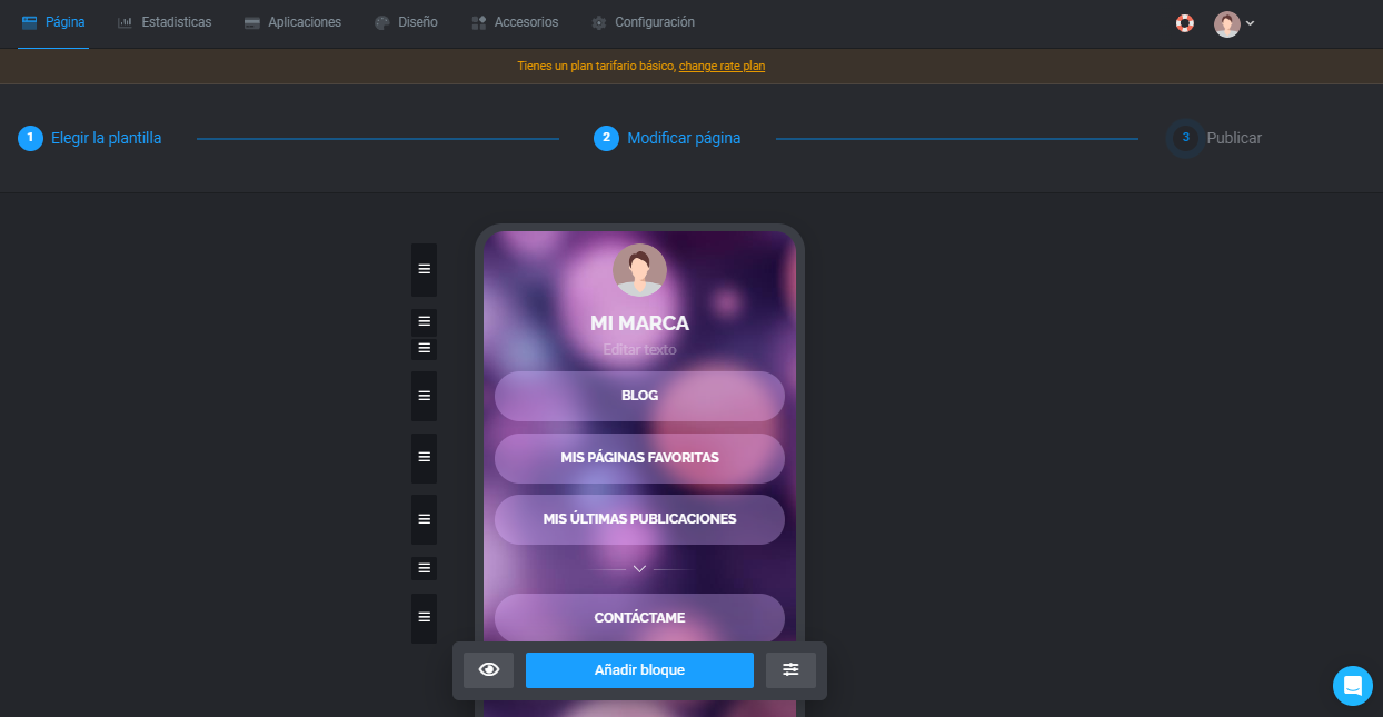 Mejor para: Plan gratuito (empatada con Bio.link)