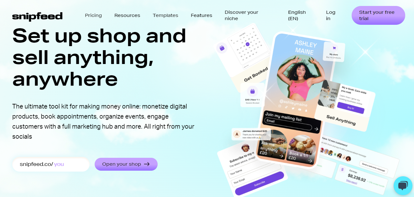 | Snipfeed | Páginas personalizables Formas fáciles de recibir pagos Contenido exclusivo | No | Pro | $20/mesPro Plus | $59/mes |