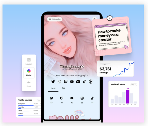 Tap Bio es una alternativa a Linktree enfocada en creadores, emprendedores, influencers y negocios que buscan comercializar sus marcas principalmente en Instagram; es por eso que sus estilos de tarjetas se parecen a las historias de Instagram. Con Tap Bio, puede crear mini sitios cuyo objetivo es convertir a sus seguidores en clientes.