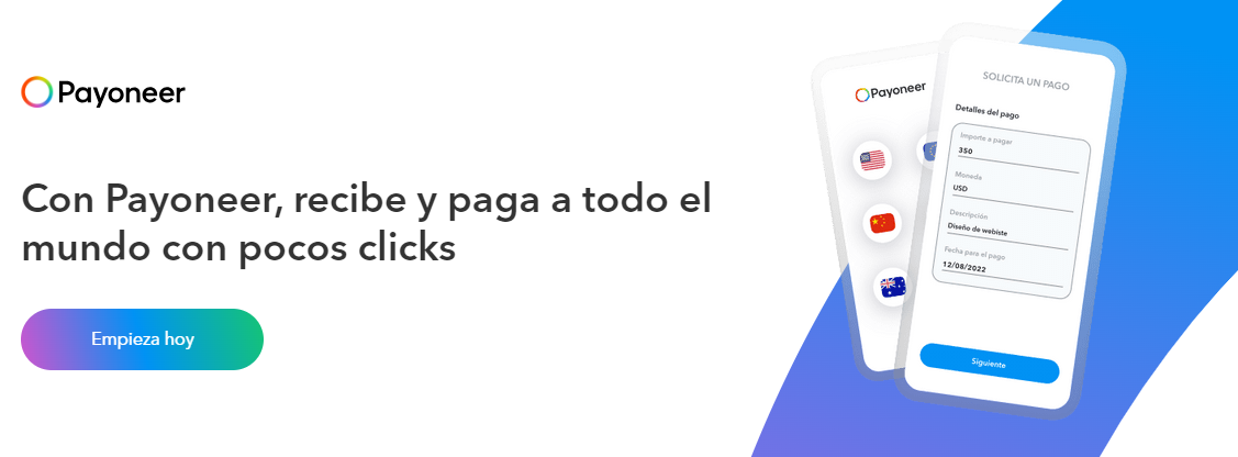 Puede que Venmo cuente con perfiles comerciales que permiten a los usuarios aceptar pagos de clientes, sin embargo, es bastante limitada — sobre todo porque Venmo solo está disponible en Estados Unidos. Pero con la plataforma de pagos Payoneer, puede recibir pagos de clientes de todo el mundo (ya que la plataforma es accesible en más de 200 países) para hacer crecer su negocio de forma rápida y segura. Es potente, escalable y económica — no importa si es un freelancer, marketero digital o comerciante electrónico.