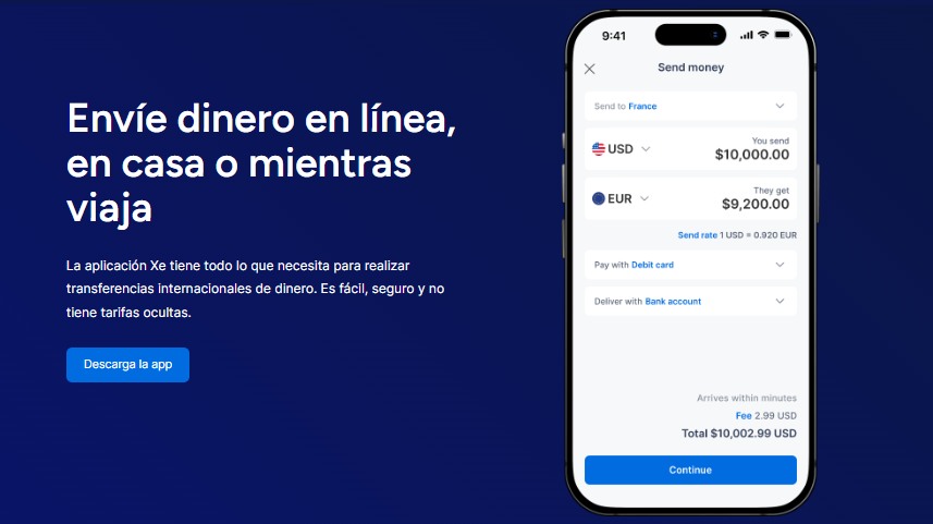 Cuando se usa la aplicación móvil de XE Money Transfer, no existe un límite máximo de transferencias. Si usa la plataforma online, las transacciones están limitadas a $500,000 cada una. XE Money Transfer añade recargos de envío pequeños en algunas transferencias y podrá ver esos recargos cuando empiece el proceso de transferencia. También puede que se realice un recargo cuando use una tarjeta de crédito o débito para pagar por su transferencia y esto dependerá de su localización.