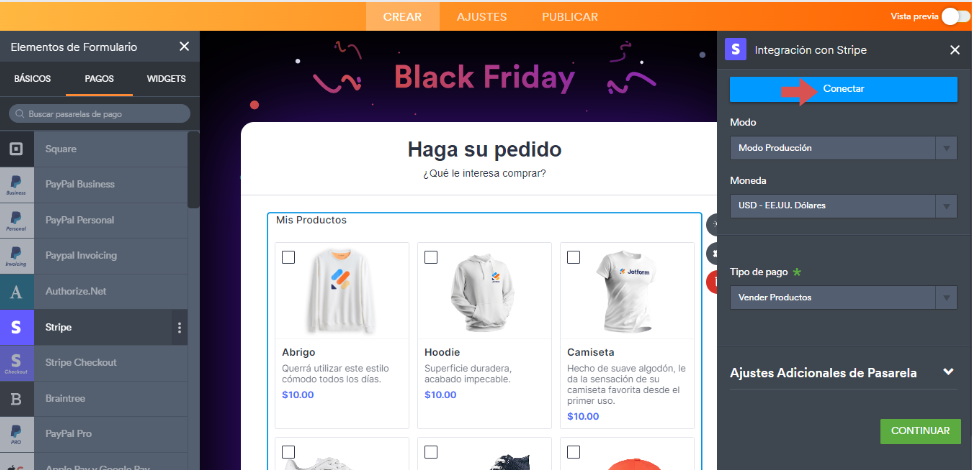 Creación de un formulario de venta de Black Friday