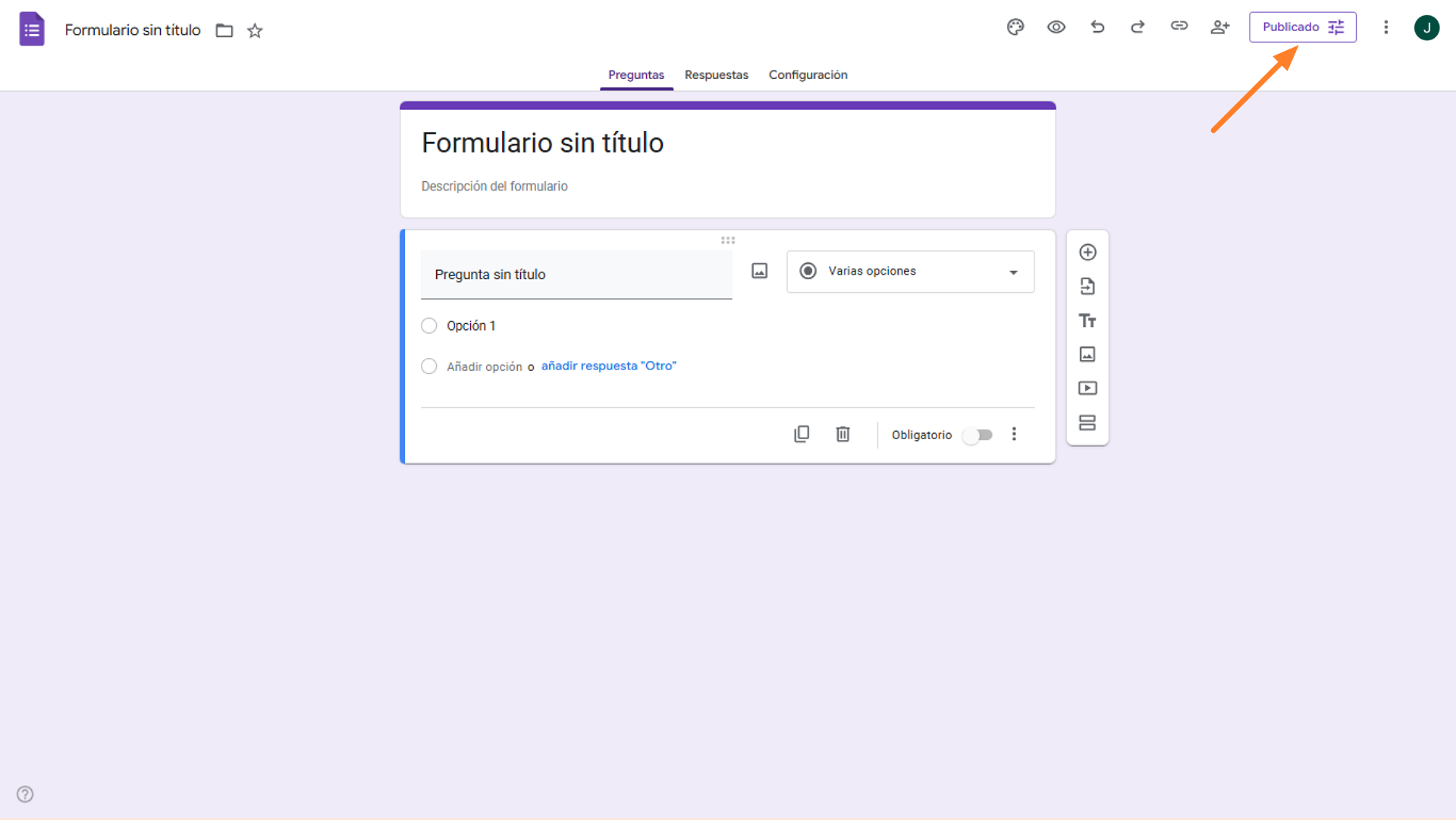 - Si tu formulario está completo, haz clic en el botón de Publicado en la esquina superior derecha.