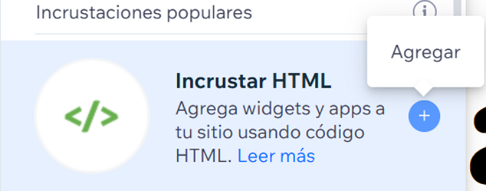 - Haz clic en Incrustar HTML en el menú de Agregar Elementos para añadir.